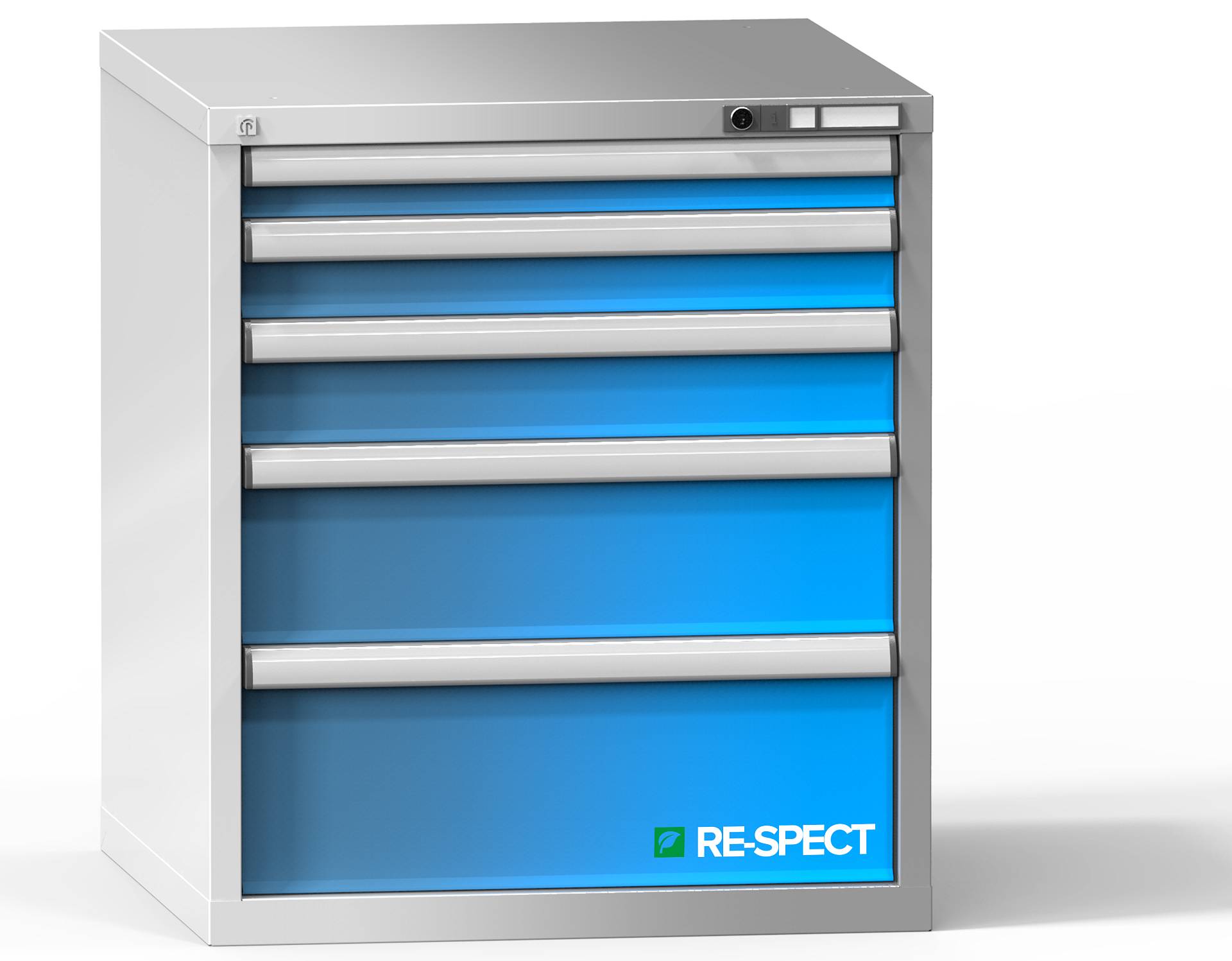 Zásuvková skříň je opatřená mechanismem centrálního zamykání a blokace zásuvek. Standardně jsou zásuvkové skříně osazeny cylindrickými zámky, ke každému zámku jsou dodávány dva klíče. Platnost nabídky do vyprodání (omezený počet kusů skladem).