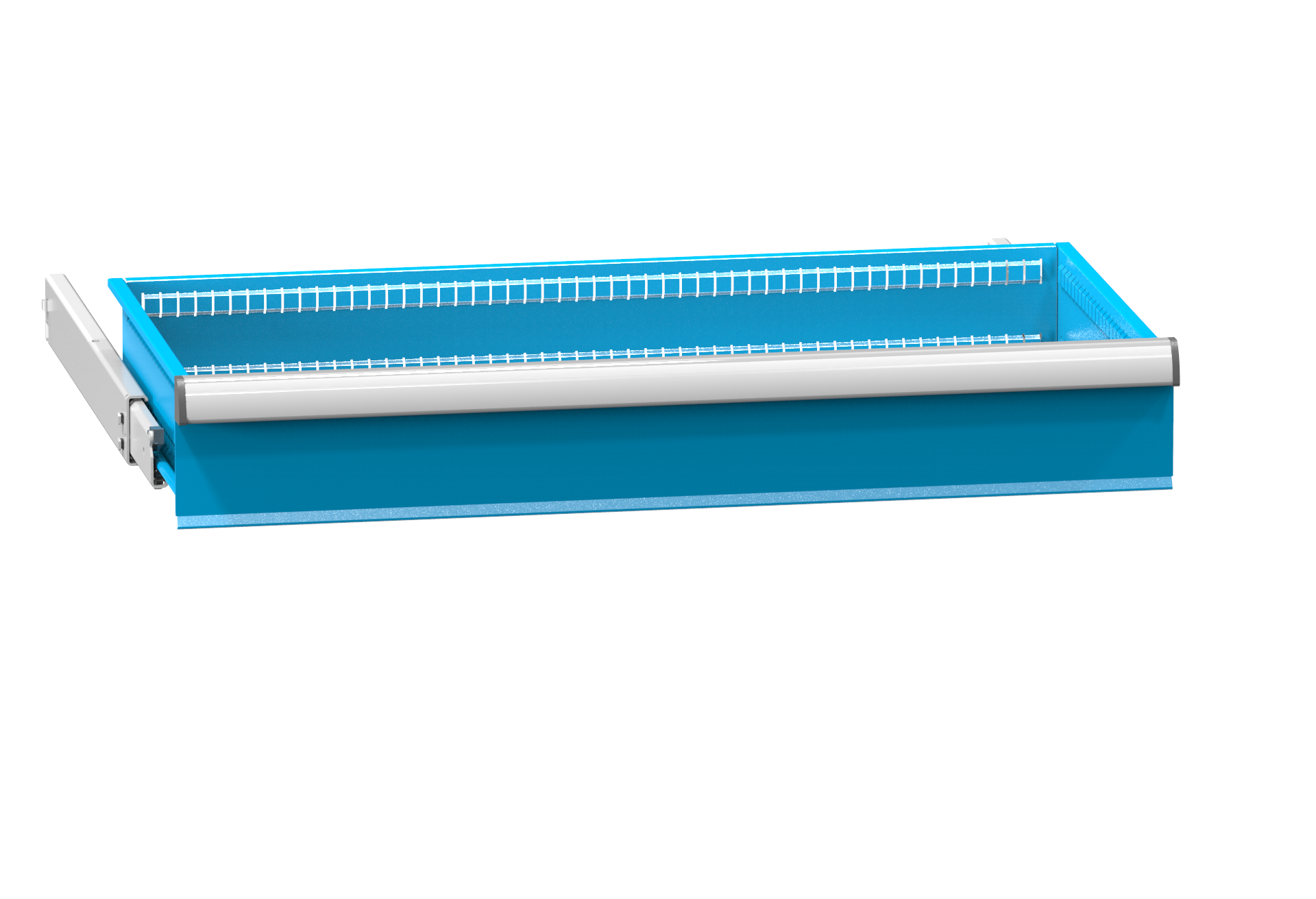 Konstrukce výsuvu zajistí 100 % vysunutí zásuvky a umožní tak přístup k celé její ploše. Vodící lišty výsuvného mechanismu jsou v bočnicích korpusů skříní stavitelné po 25 mm. Plynulý, tichý chod, maximální zatížení 200 kg.